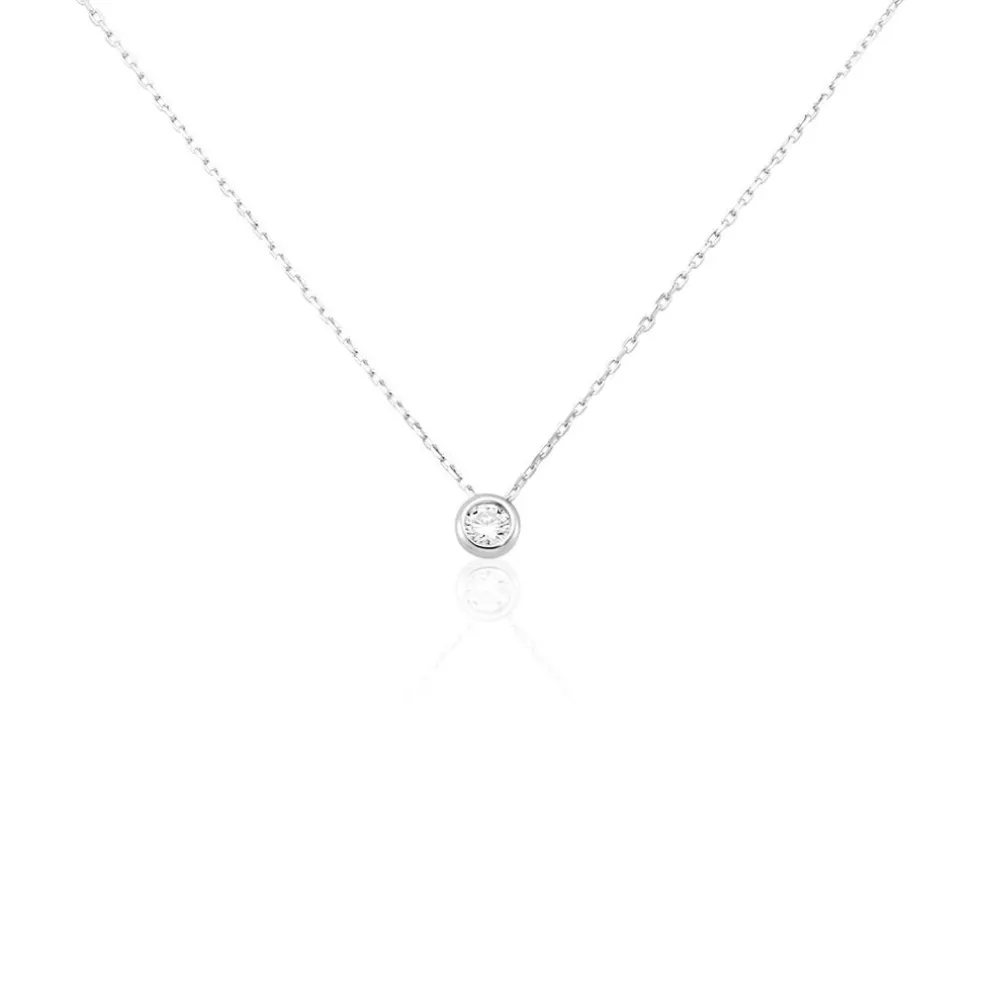 Collier Or Blanc 375/1000 Diamant 0.11cts Serti Clos Beliere Mobile Maille Forcat 40+2cm