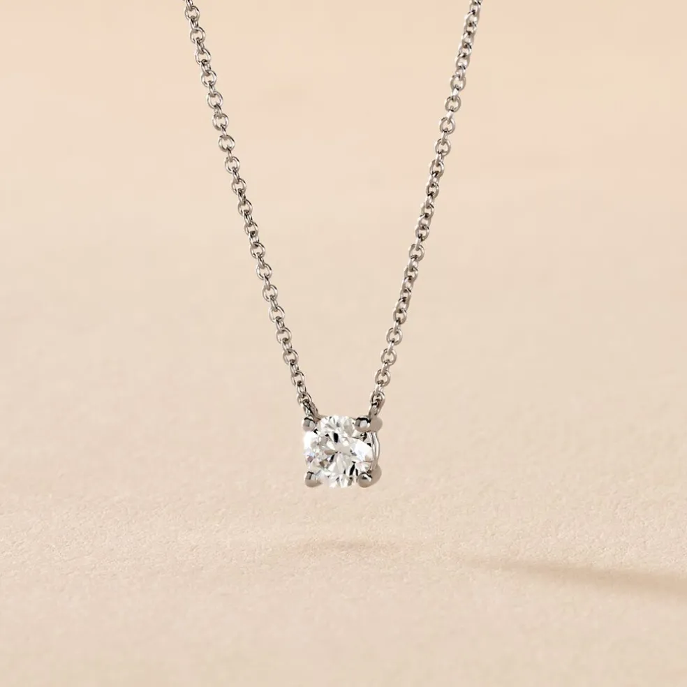 Collier Or Blanc 375/1000 Solitaire Diamant 0.30cts 42cm