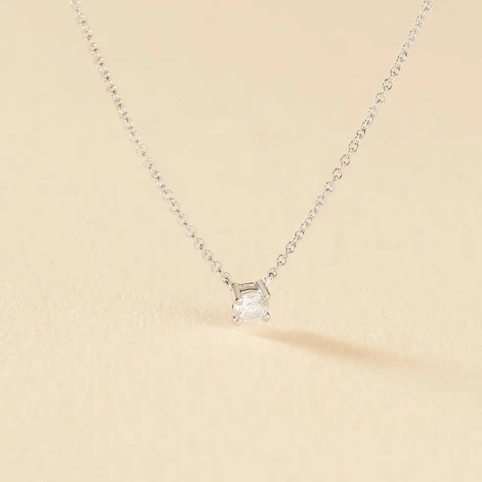 Collier Or Blanc 375/1000 Solitaire Diamant 0.10cts 42cm