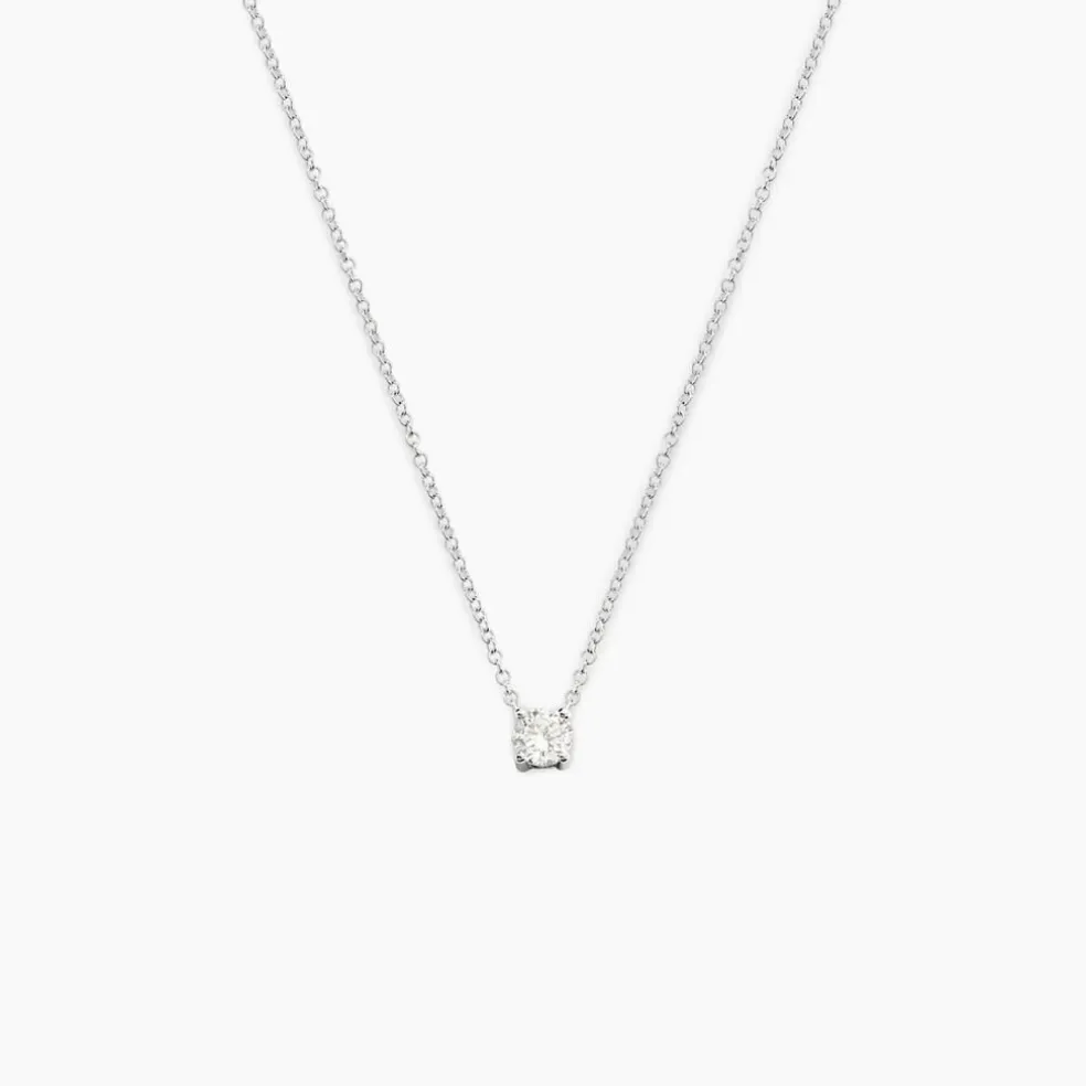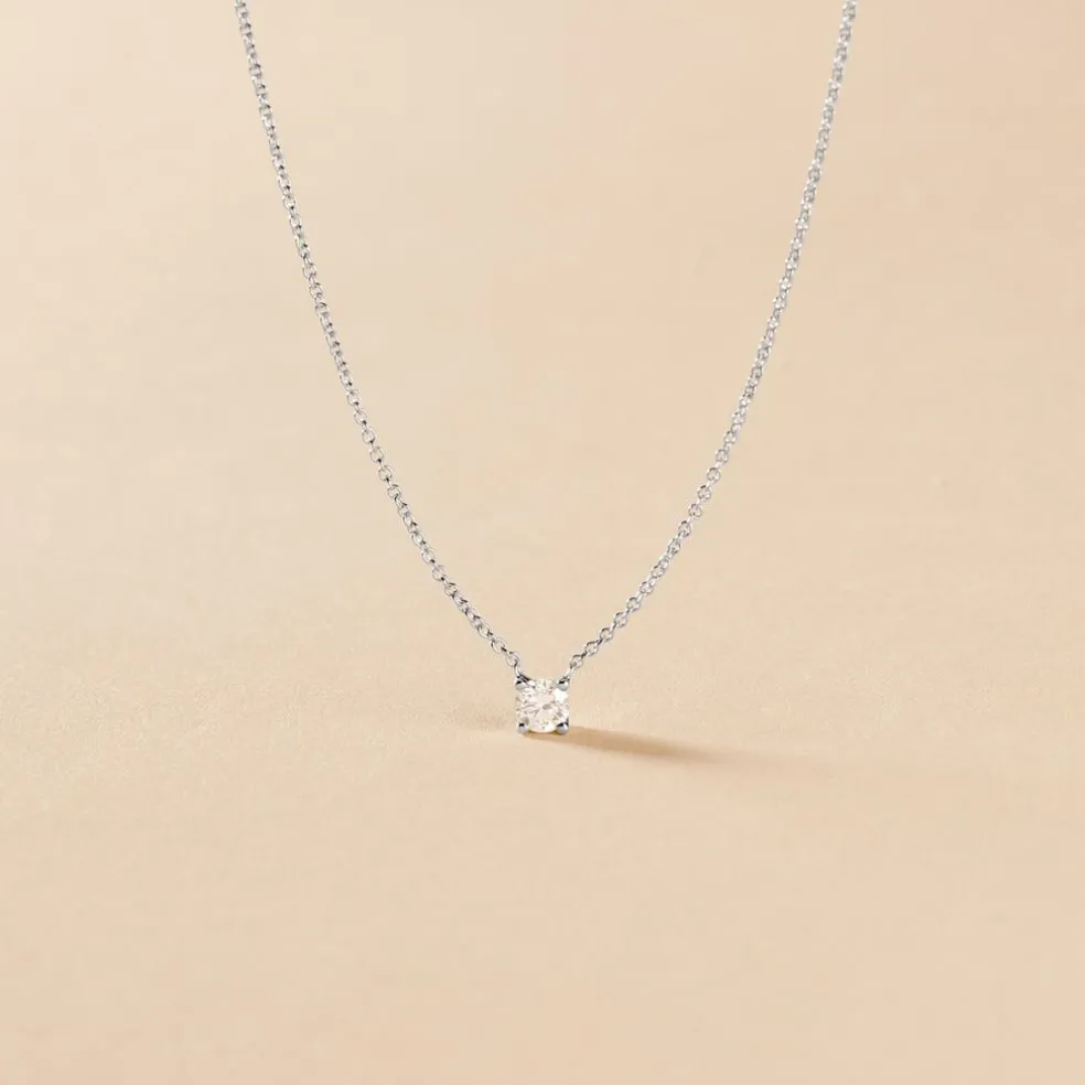 Collier Or Blanc 375/1000 Solitaire Diamant 0.15cts 42cm