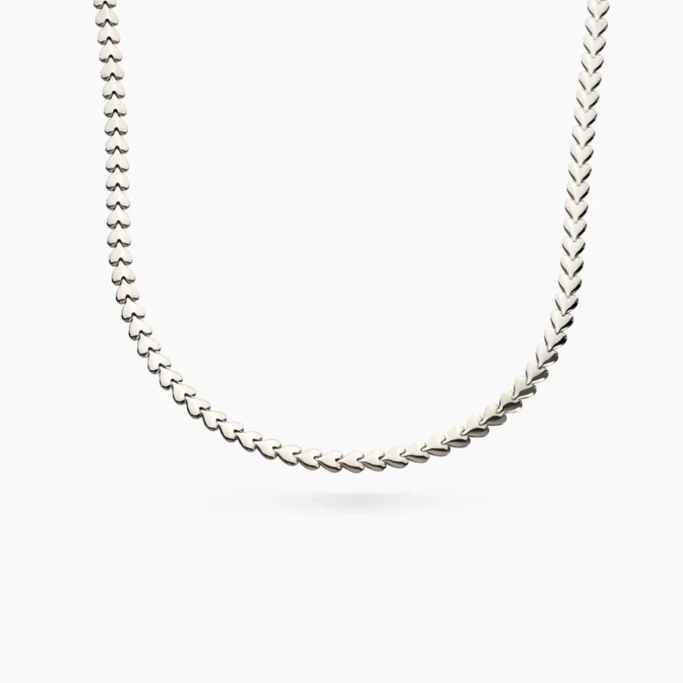 Collier Argent Blanc 925/1000 Maille C艙urs Largeur 5mm 42+3cm