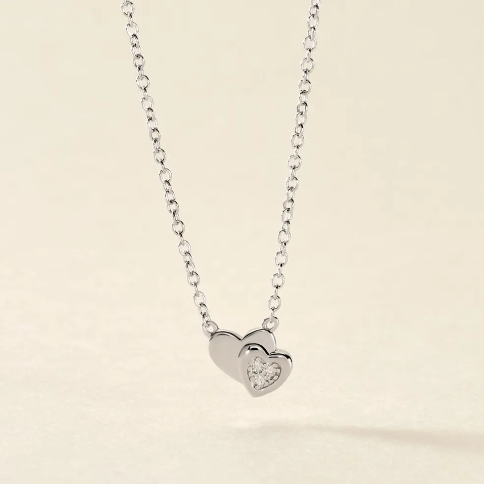Collier Argent 925/1000 dounyo Double C艙ur Pavage Oxydes De Zirconium Maille Forcat 45cm