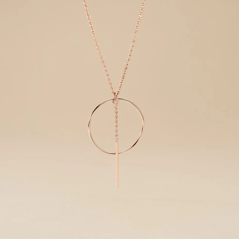 Collier Argent Rose 925/1000 Cercle Ajoure Barrette Pendante Maille Forcat 45cm