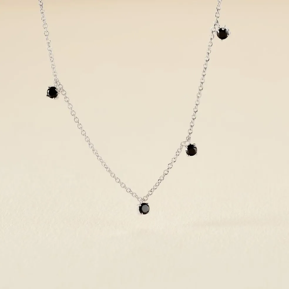 Collier Argent 925/1000 4 Oxydes De Zirconium Noirs Serti 4 Griffes 3mm Maille Forçat 45cm