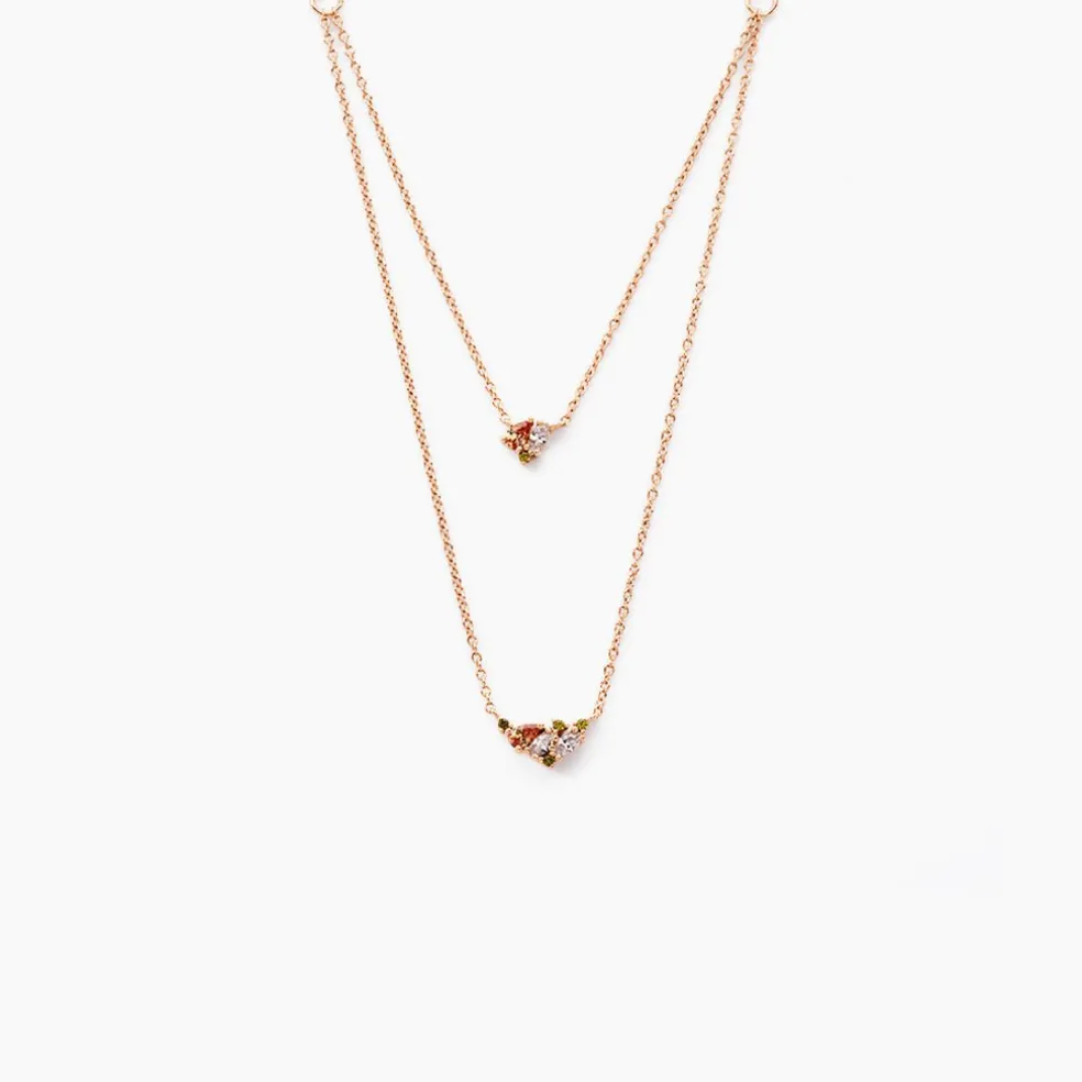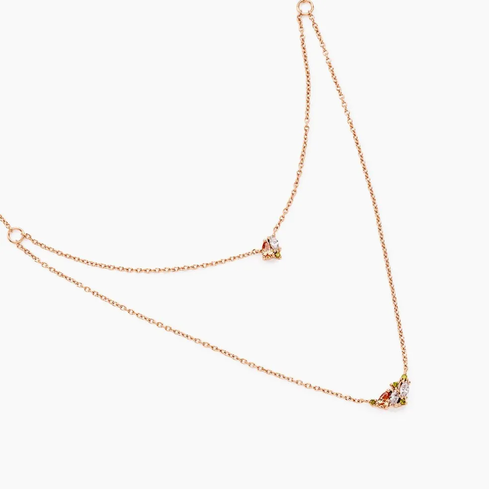 Collier Argent Rose 925/1000 Pavage Oxydes De Zirconium Multi Couleur Maille Jaseron 42+3cm