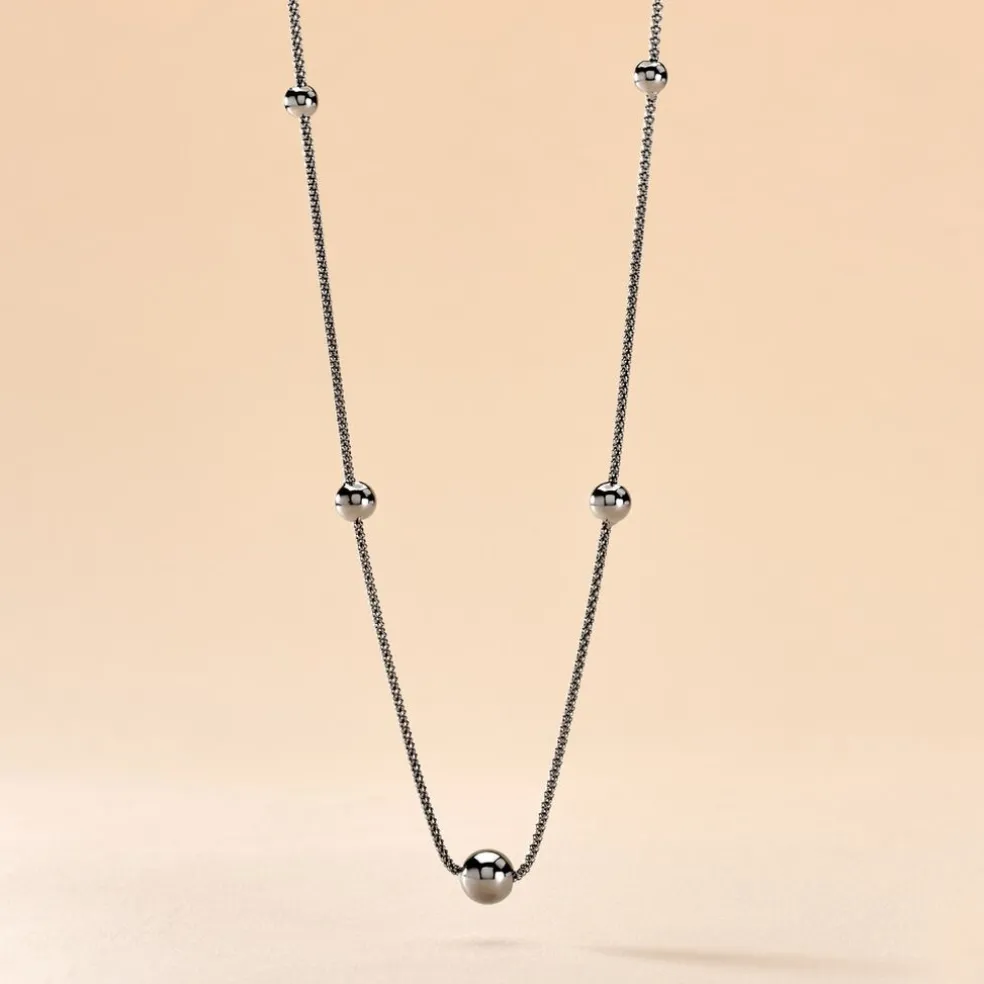 Collier Argent Blanc 925/1000 Boules Maille Pop Corn 50cm