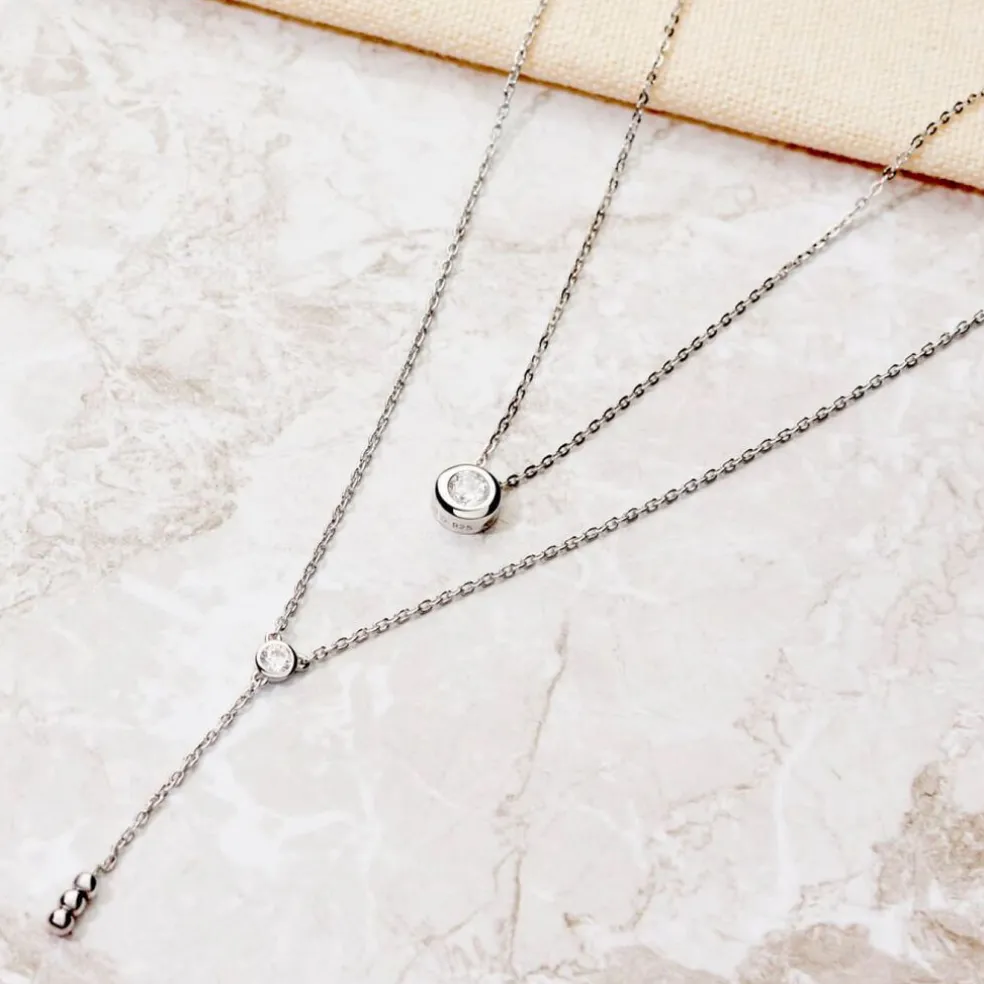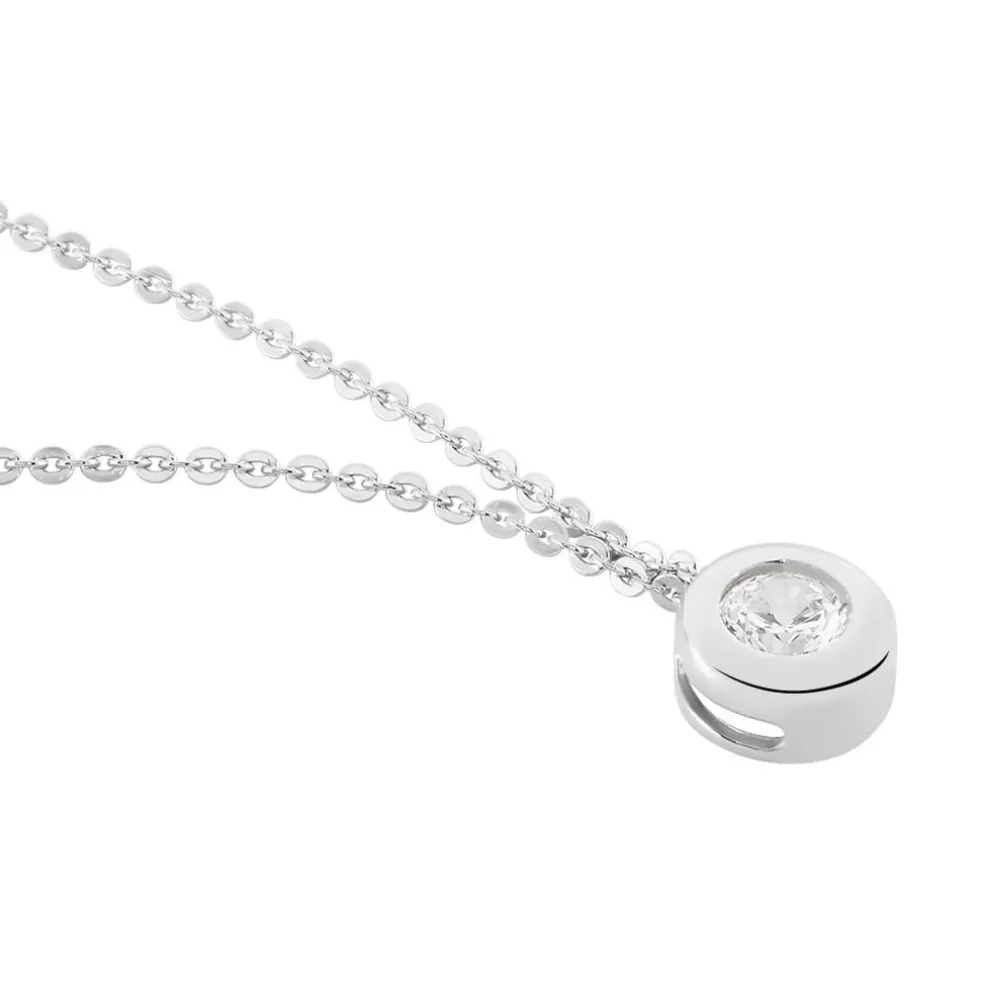 Collier Argent 925/1000 cate Pendentif Solitaire Oxyde De Zirconium Serti Clos Chaine Maille Forcat 42cm