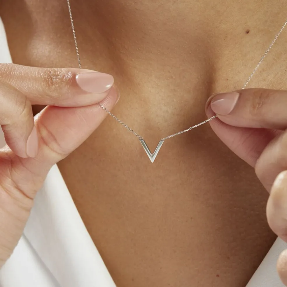 Collier Or Blanc 375/1000 Forme V Pm Maille Forcat 40+2cm