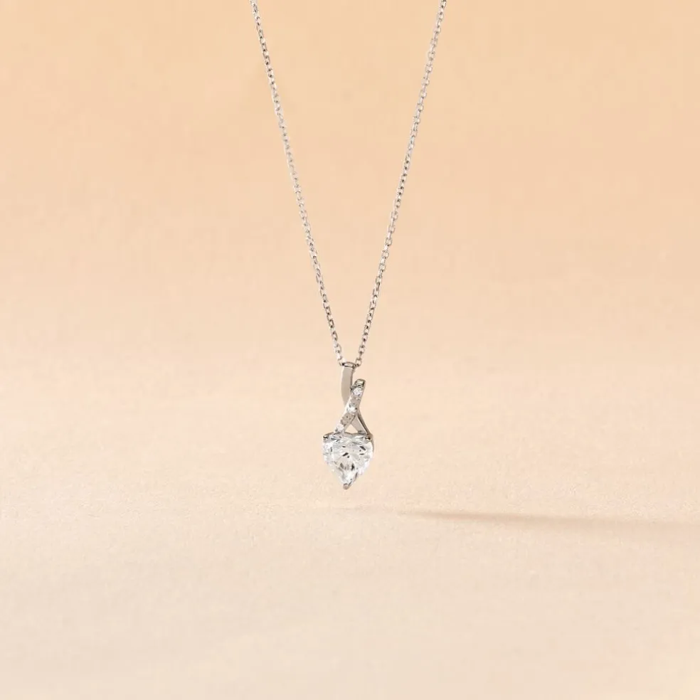 Collier Or Blanc 375/1000 C艙ur Oxydes De Zirconium Serti Griffes Maille Forçat 42cm