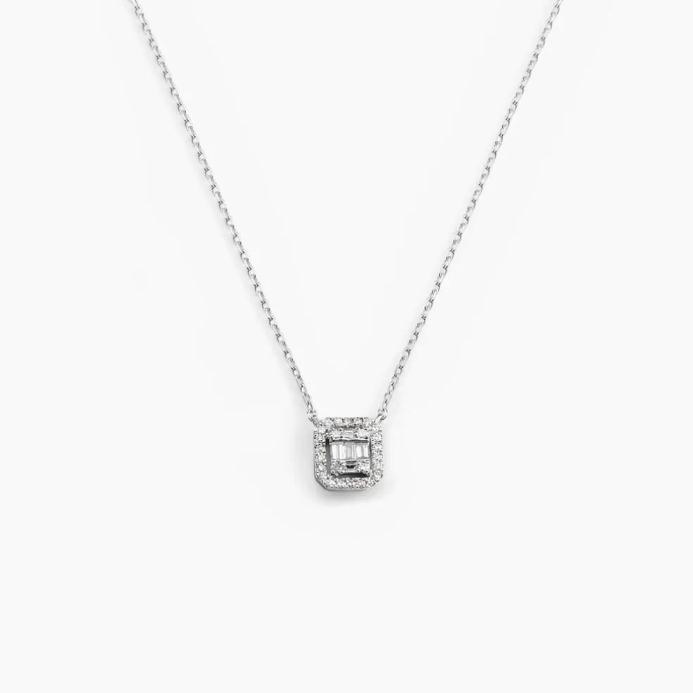 Collier Or Blanc 375/1000 Forme Carrée Diamants Baguettes 0.09cts 42cm