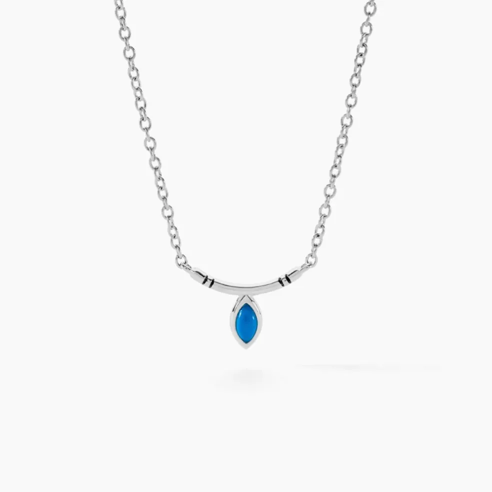 Collier Argent Blanc 925/1000 Goutte Turquoise Maille Jaseron 42+3cm