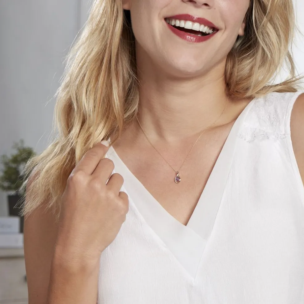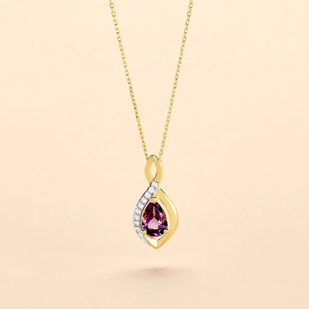 Collier Or Jaune 375/1000 Forme Goutte Améthyste Et Oxydes De Zirconium Maille Forçat 38+4cm