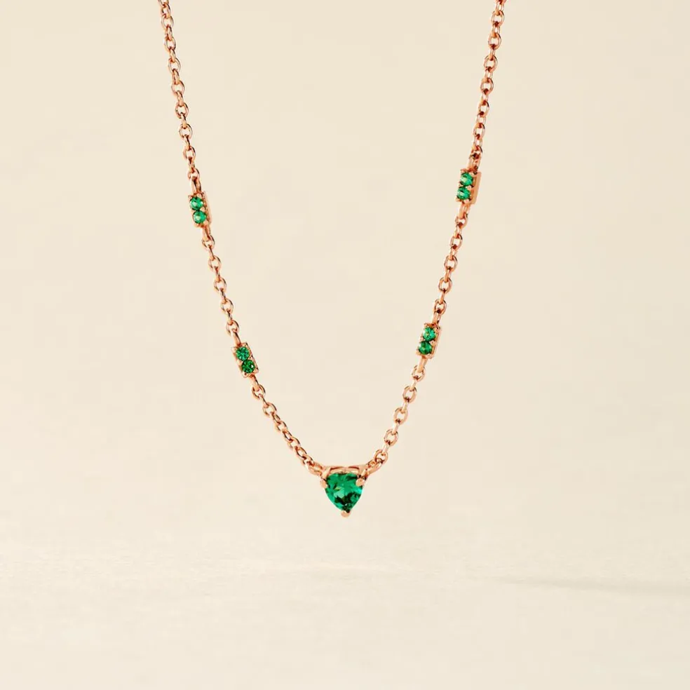 Collier Argent Rose 925/1000 Coeur Oxydes De Zirconium Verts Maille Forcat 38+2cm