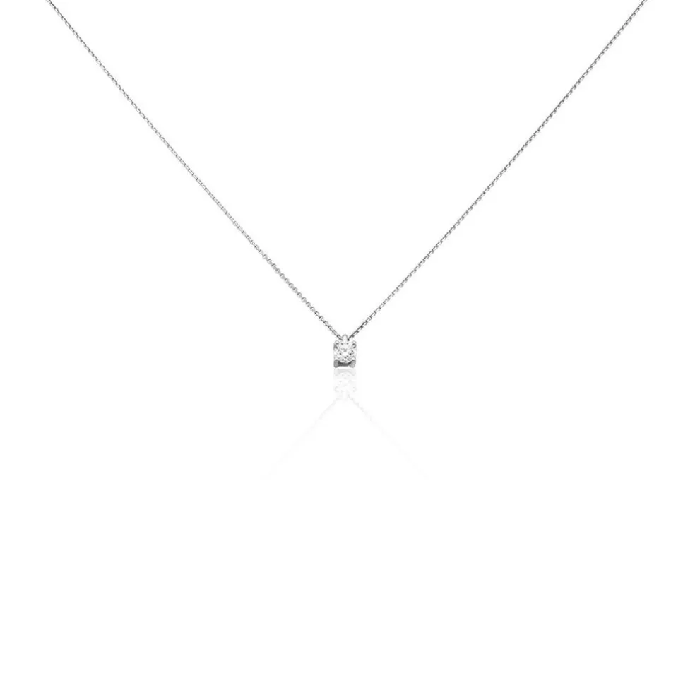 Collier Or Blanc 750/1000 Diamant 0.26cts Diamant Serti 4 Griffes Beliere Mobile Maille Forcat 40+2cm