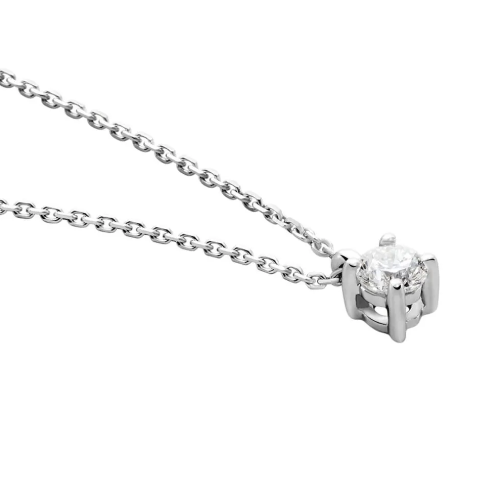 Collier Or Blanc 750/1000 Diamant 0.16cts Diamant Serti 4 Griffes Beliere Mobile Maille Forcat 40+2cm