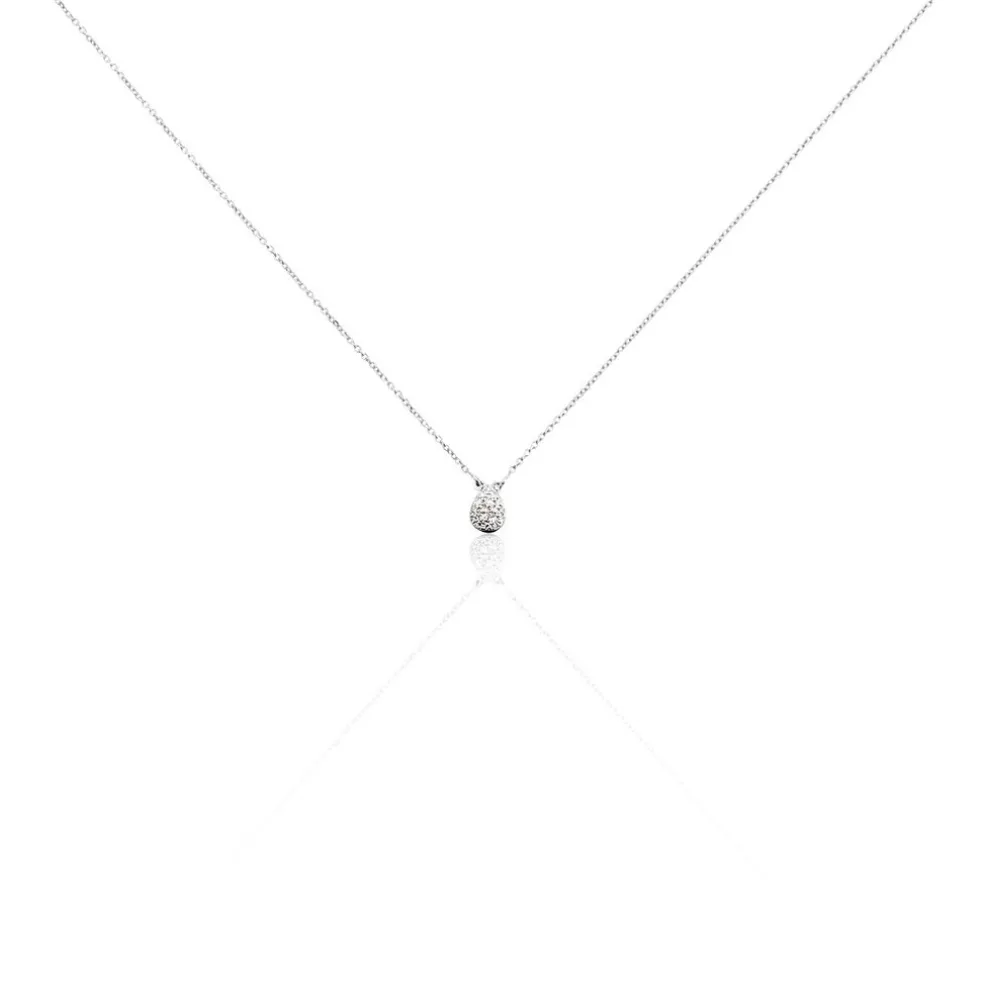 Collier Or Blanc 375/1000 Goutte Pavage Diamants 0.46mm 40cm