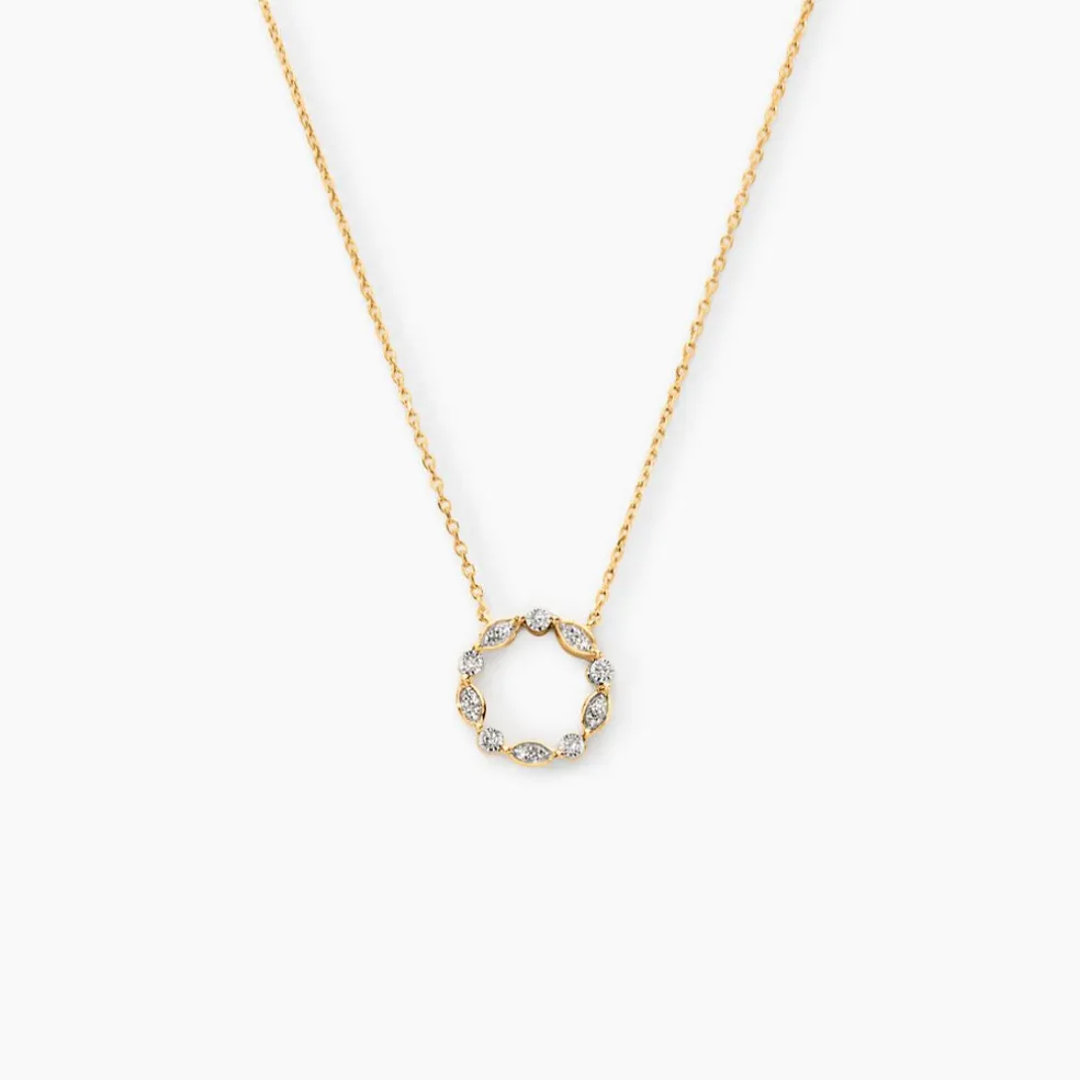 Collier Or Jaune 375/1000 Cercle Ajoure Diamants Dentelle 0.02cts Illusion Maille Forcat 40+2cm