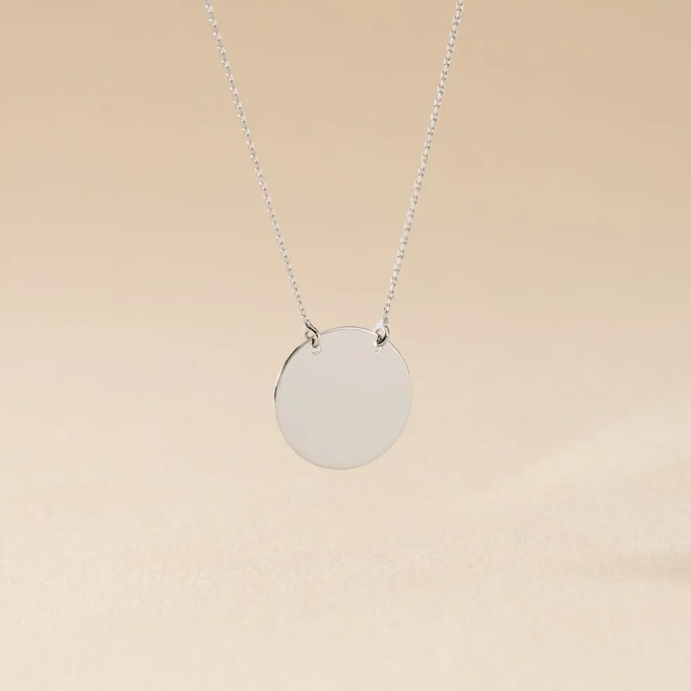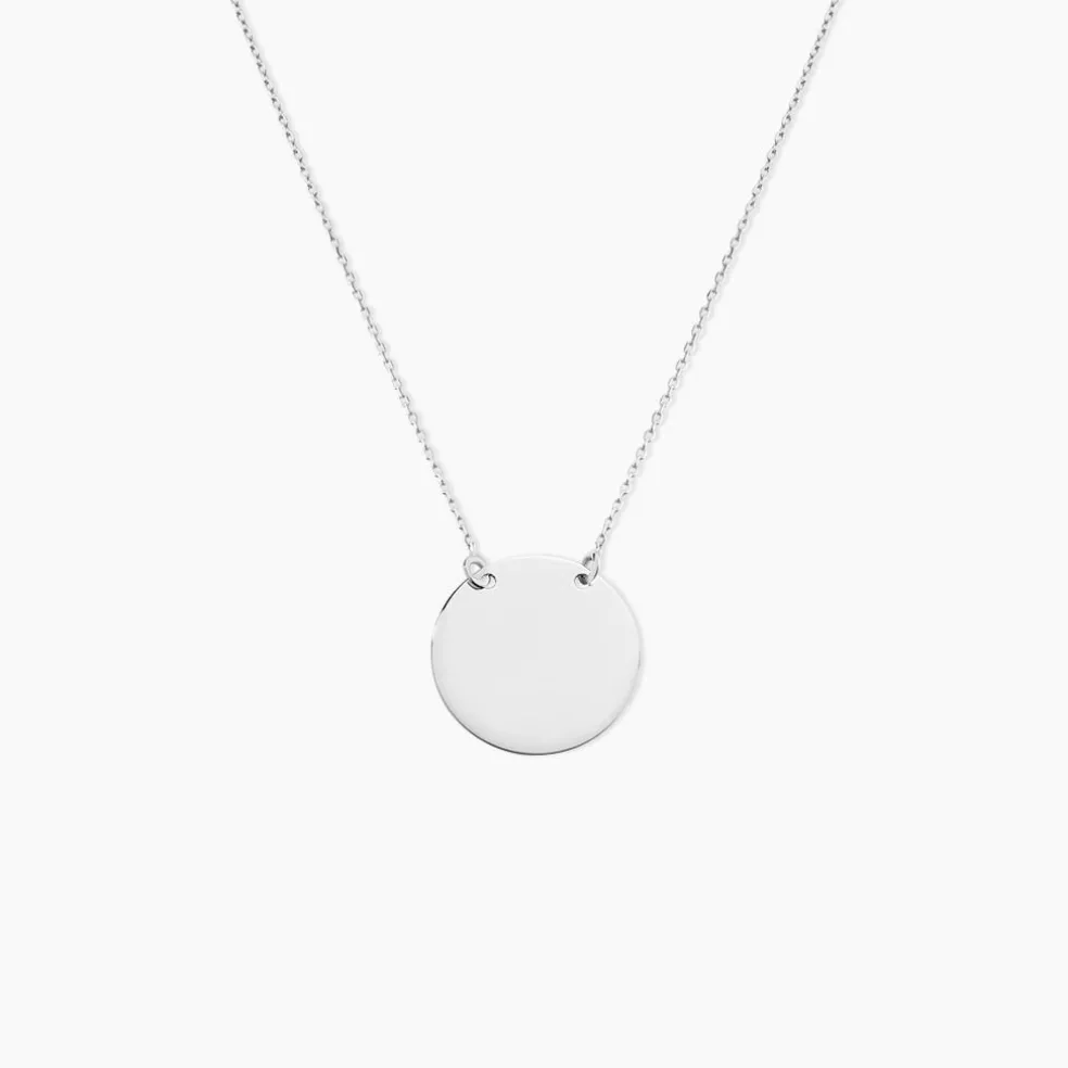 Collier Or Blanc 375/1000 Ligne Evolutive Gravable Pastille 40cm