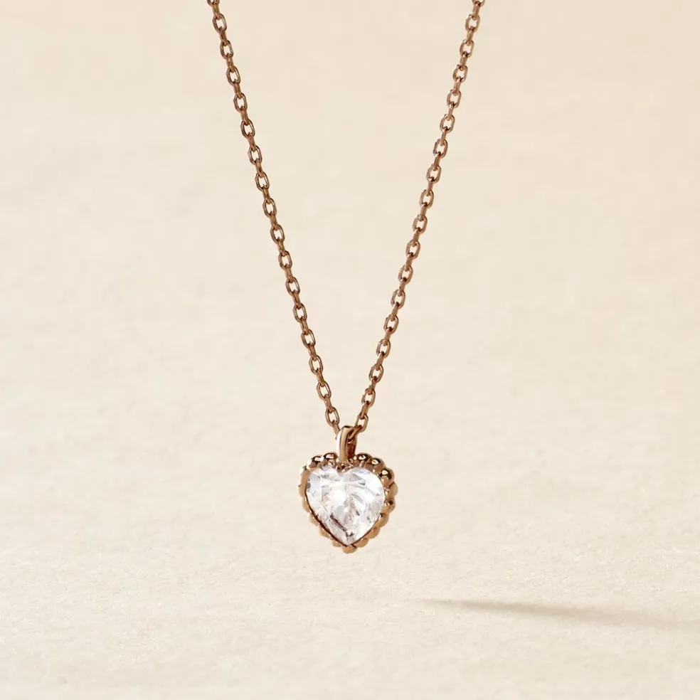 Collier Or Rose 375/1000 Solitaire Forme C艙ur Oxyde De Zirconium Serti Clos 43cm