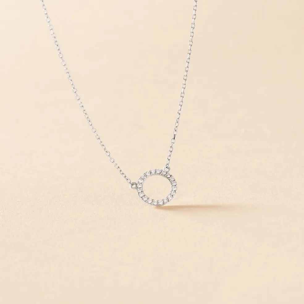 Collier Or Blanc 375/1000 Cercle Creux Pave Oxyde De Zirconium 42cm