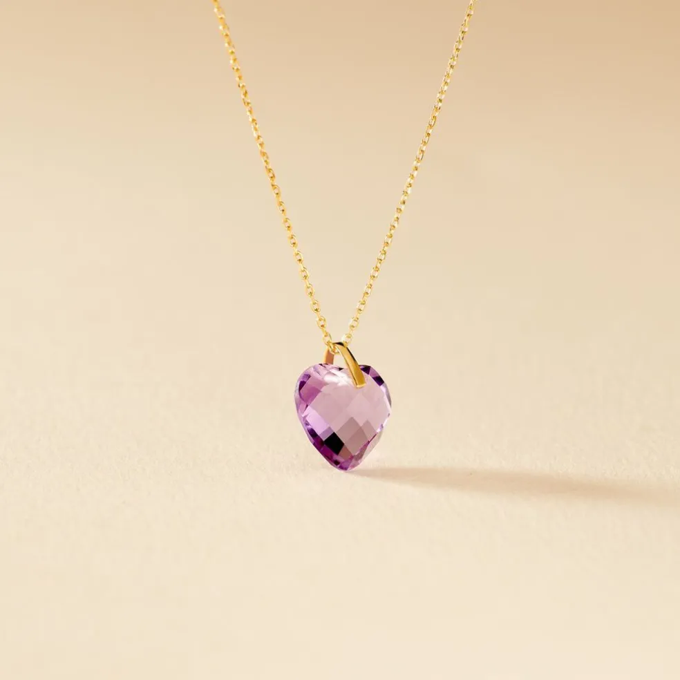 Collier Or Jaune 375/1000 Forme C艙ur Améthyste 43cm