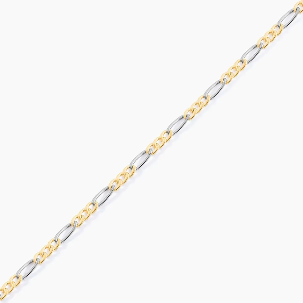 Collier Maille Or Bicolore Jaune Et Blanc 750/1000 Maille Alternee 1/3 Largeur 2.2mm 50cm