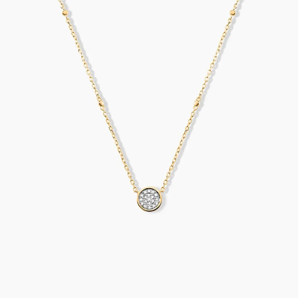 Collier Or Jaune 375/1000 Forme Cercle Pavage Diamants Maille Forçat Motif Boule 42cm