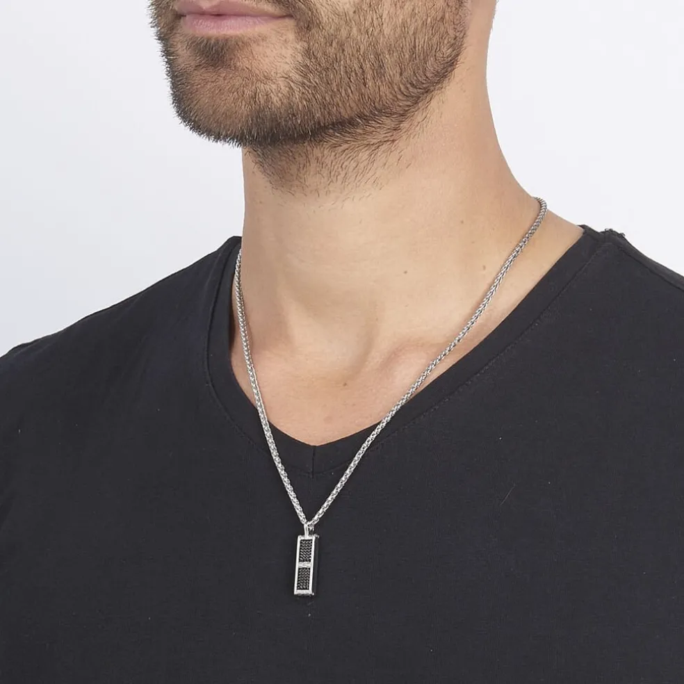 Collier Acier Plaque Rectangulaire Acier Et Pvd Noir 50cm
