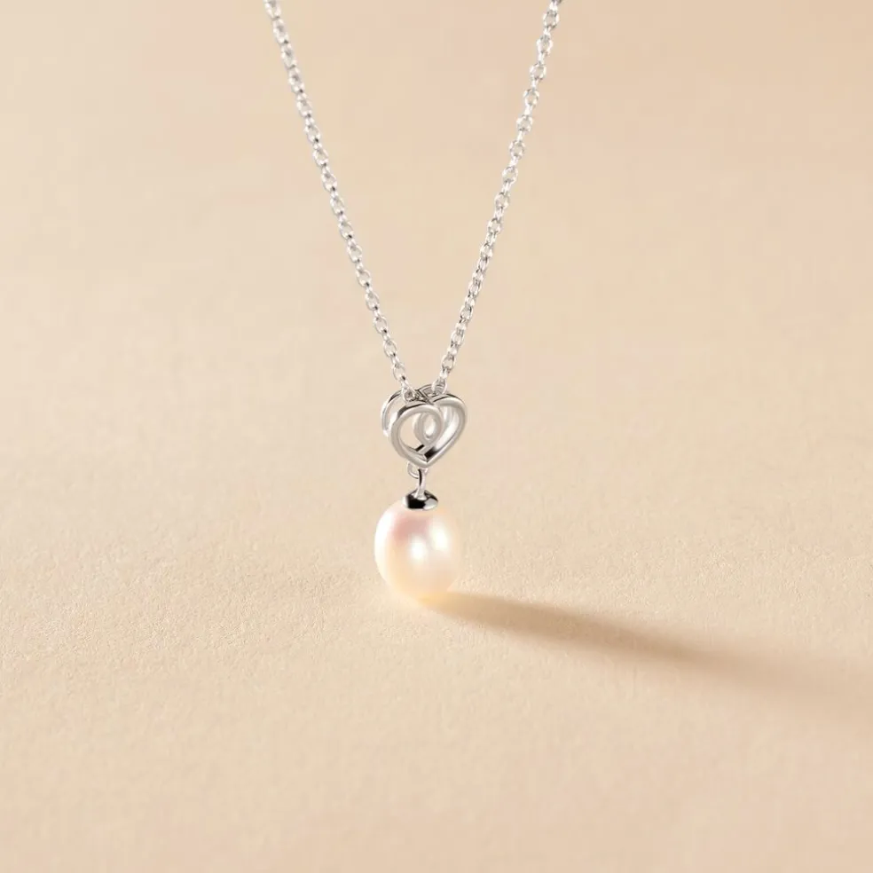 Collier Argent Blanc 925/1000 Coeur Perle De Culture Nacre 7-7.5mm 45cm