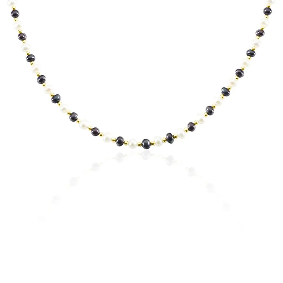 Collier Or Jaune 375/1000 Perles De Culture 4.5/5mm Semi-baroques + Boules Or 42cm