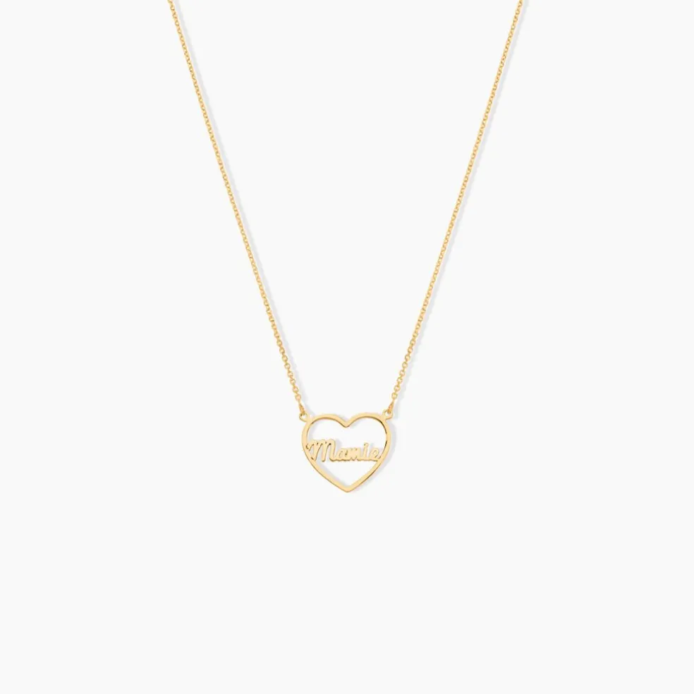 Collier Or Jaune 375/1000 C艙ur Ajoure Message Mamie Maille Jaseron 40+2cm