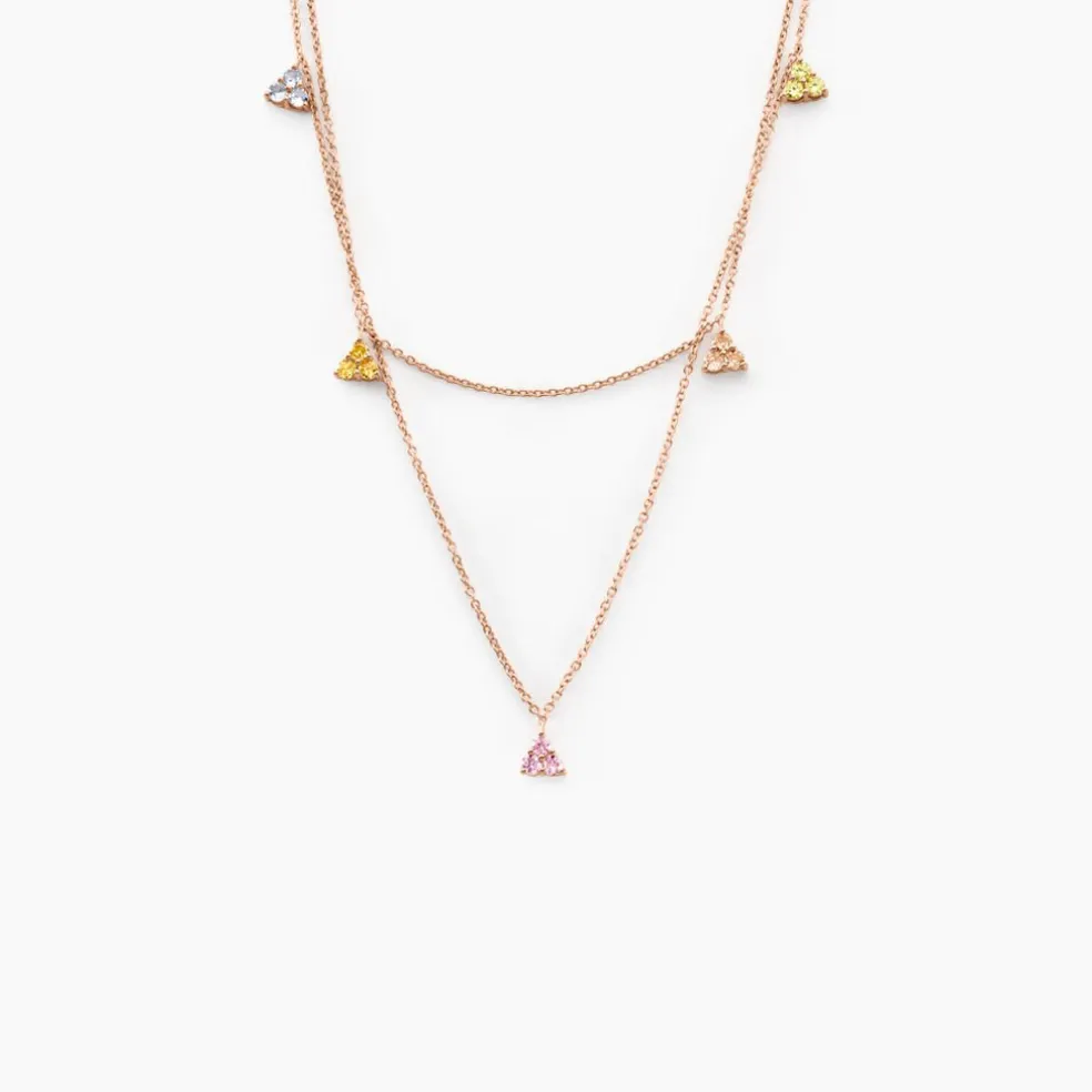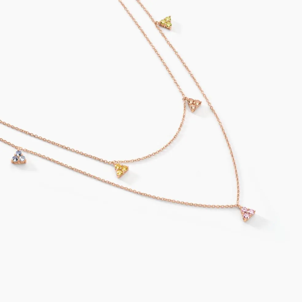Collier Argent Rose 925/1000 Pampilles Fleurs Oxydes De Zirconium Multicolores Serti Griffes Maille Forçat 42+3cm