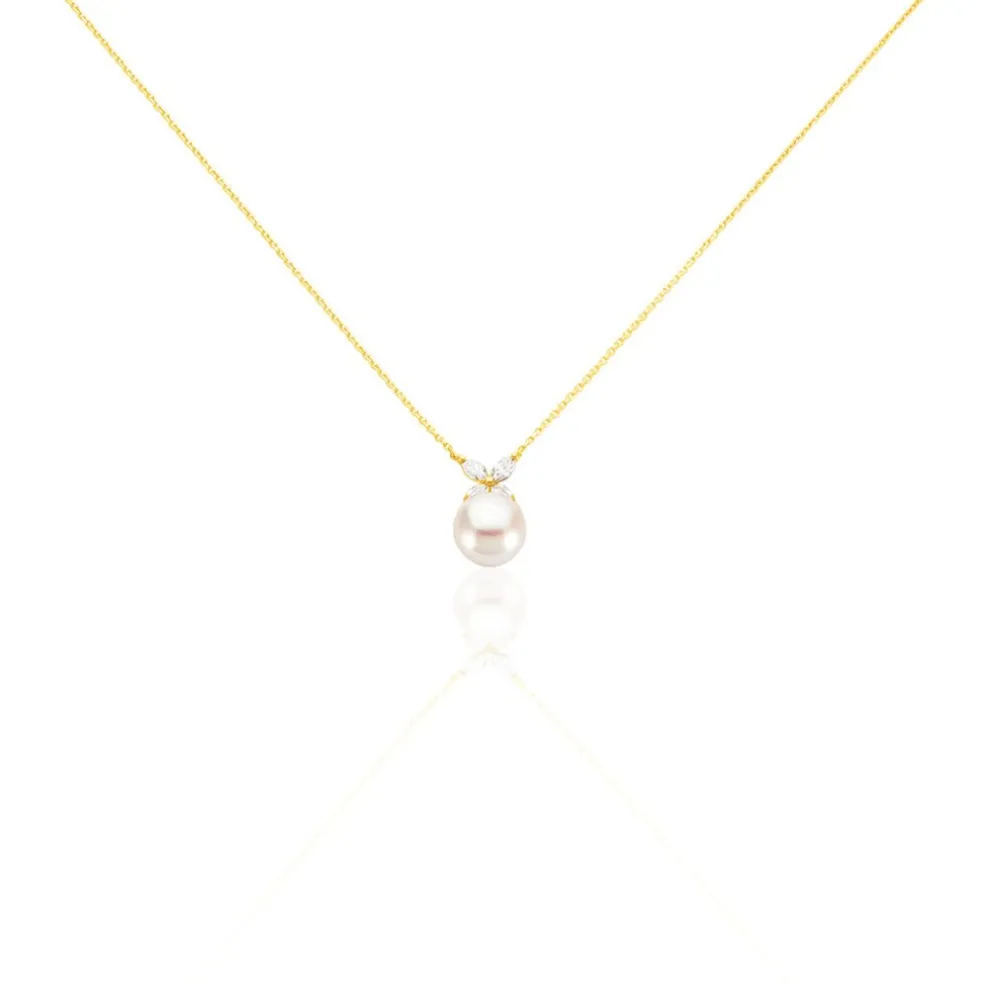 Collier Or Jaune 375/1000 Fleur Oxydes De Zirconium Perle De Culture 8mm 43cm