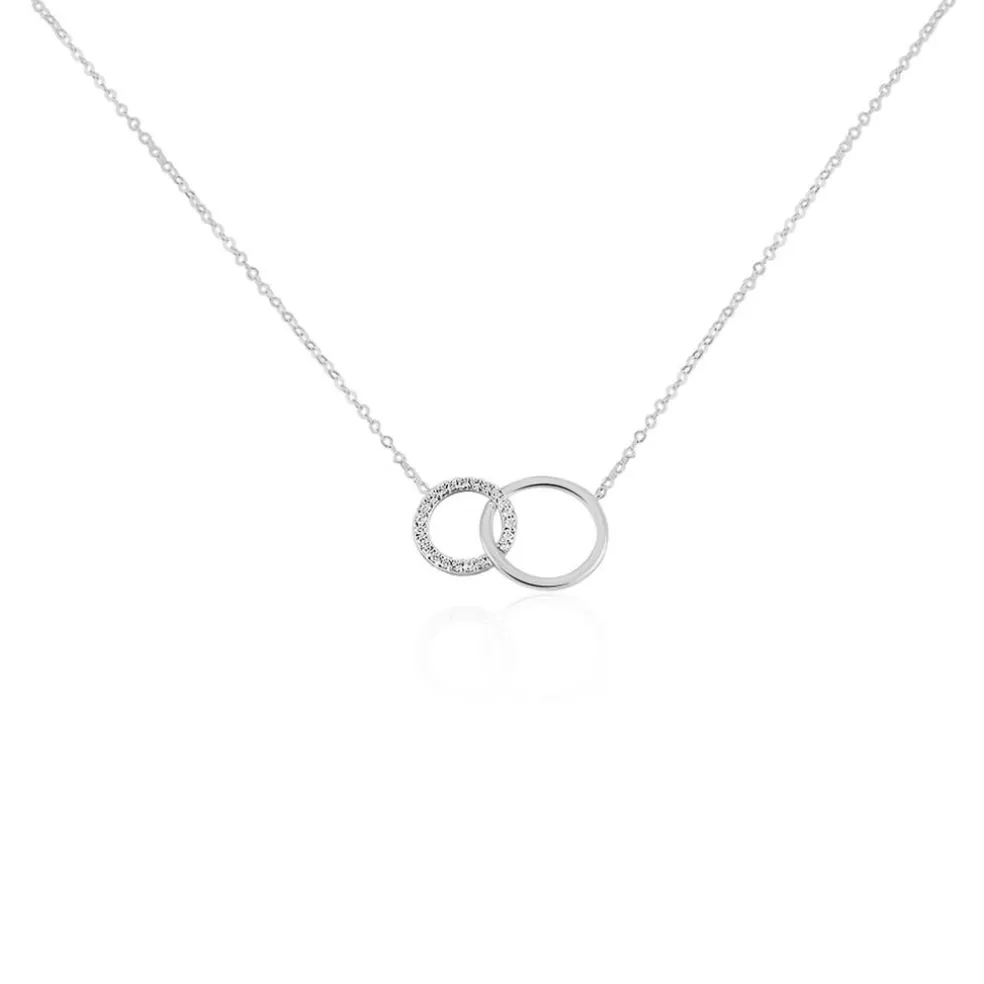 Collier Or Blanc 375/1000 Double Cercles Pavage Oxydes De Zirconium 42cm
