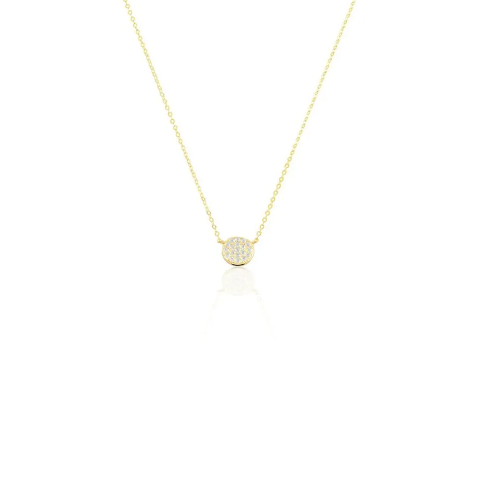 Collier Or Jaune 375/1000 Pastille Ronde Oxyde De Zirconium Maille Forçat 42cm
