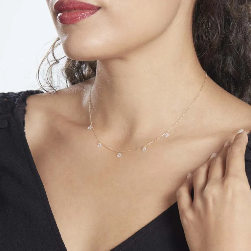 Collier Or Jaune 375/1000 5 Oxydes De Zirconium Perces 40+2 Cm