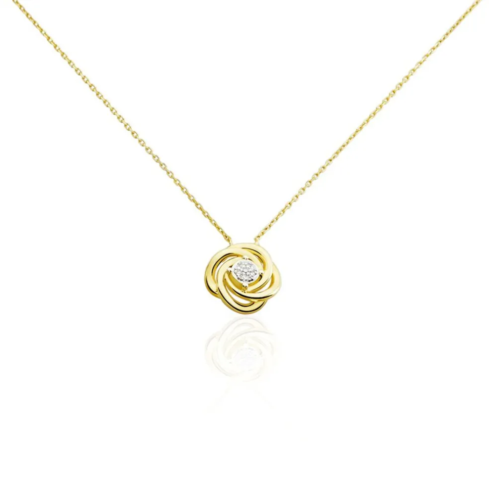 Collier Or Jaune 375/1000 Forme Cercle Entrelaces Intérieure Pavage Diamants Blancs Maille Forçat 40+2cm