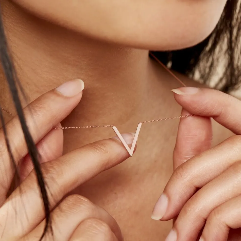 Collier Or Rose 375/1000 Forme V Gm Maille Forcat 40+2cm