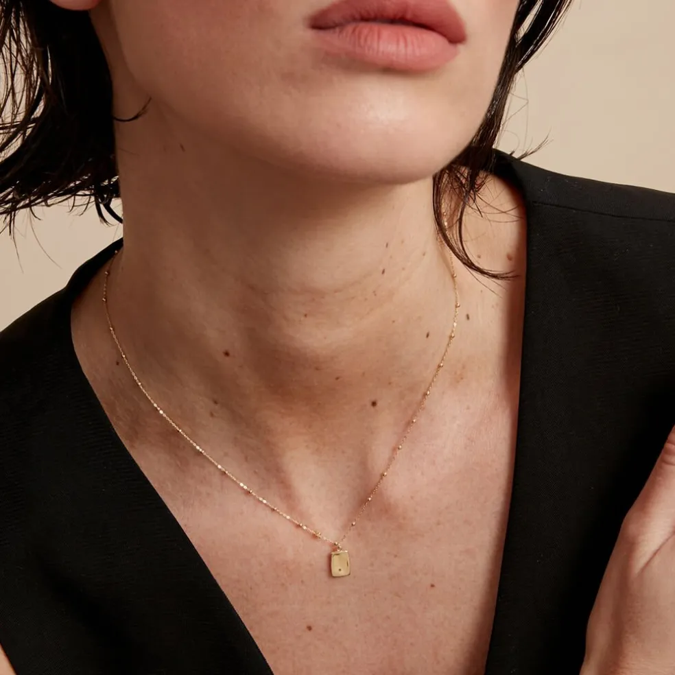 Collier Or Jaune 375/1000 Plaque Rectangle Martelee 9.6mm X 6.5mm Maille Jaseron Alternee Boules 40+2cm