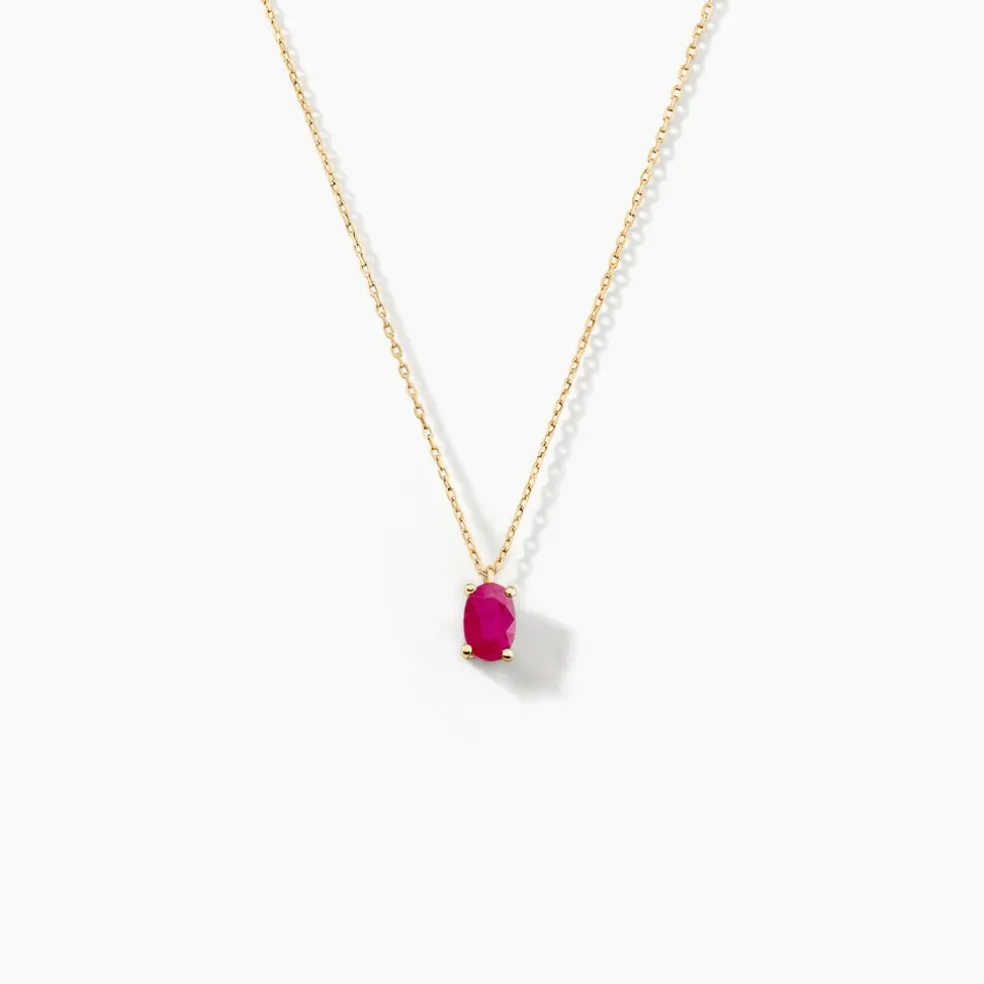 Collier Or Jaune 375/1000 Rubis Ovale Serti 4 Griffes 42cm
