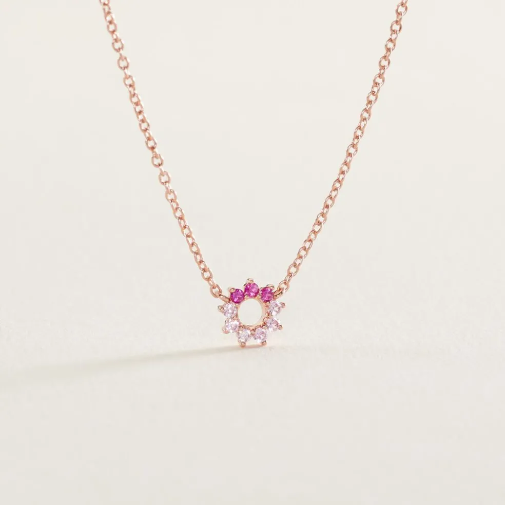 Collier Argent Rose 925/1000 Fleur Camaieu Rose Serti Griffes Oxydes De Zirconium Maille Forçat 45cm