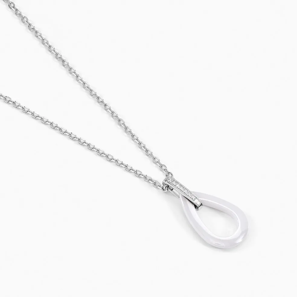 Collier Argent Blanc 925/1000 Céramique Blanche Goutte Pavage Oxydes De Zirconium Maille Forçat 42+3cm