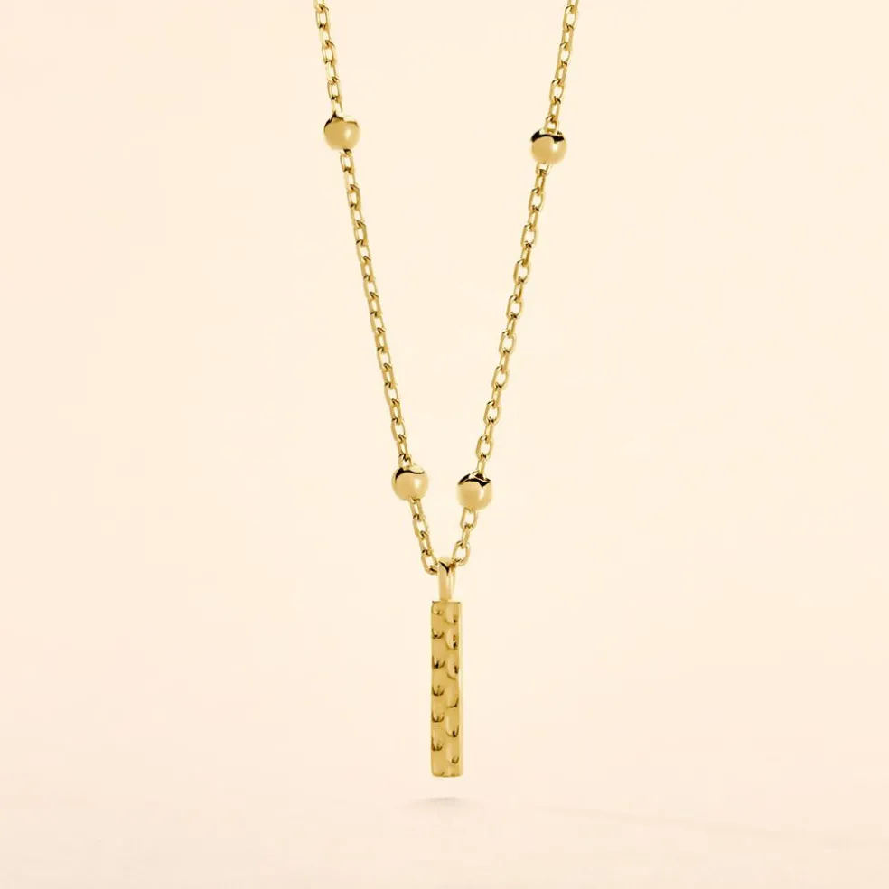 Collier Plaque Or Jaune Lettre I Martelee Et Petites Boules Chaine Maille Forcat Longueur 45cm