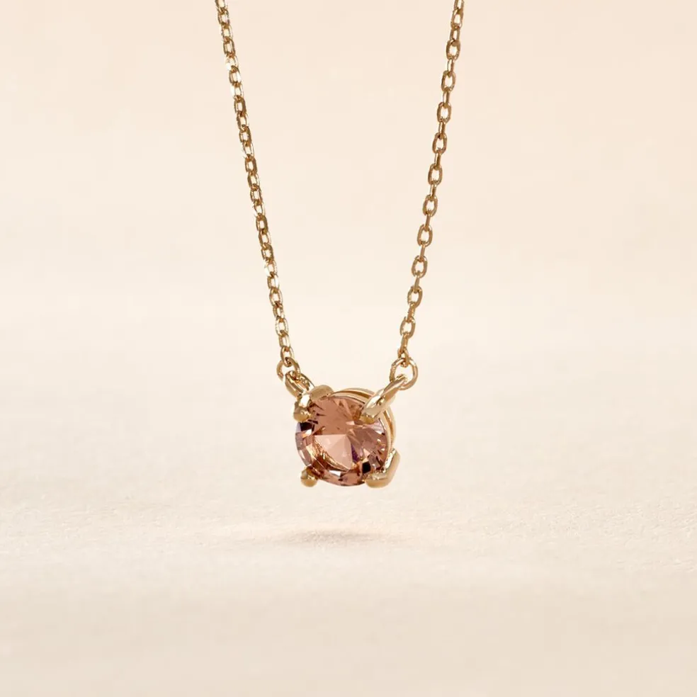 Collier Plaqué Or Jaune Oxyde De Zirconium Rose 6mm 4 Griffes Maille Forçat 45cm
