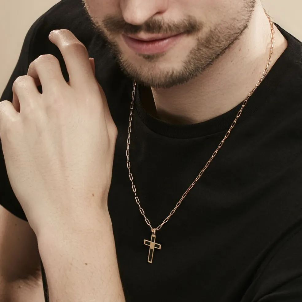 Collier Plaqué Or Jaune Croix Email Noir Maille Cheval 55cm