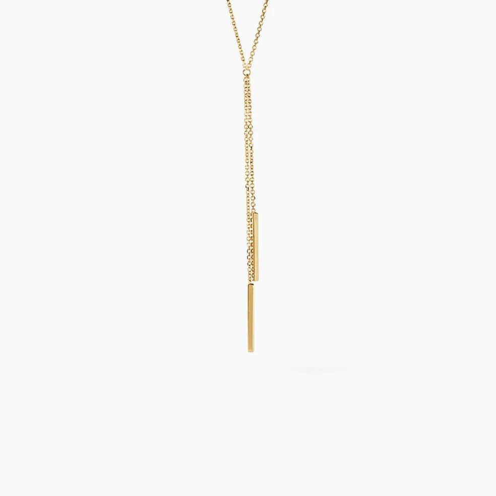 Collier Or Jaune 375/1000 Motif Double Chaine Cravate Avec Barrettes Maille Jaseron 40+2cm