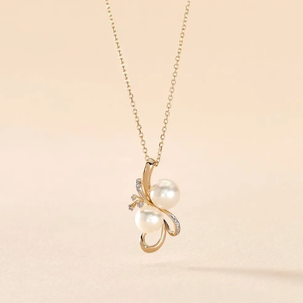 Collier Or Jaune 375/1000 Perles De Culture Rondes De 5.5/6mm Et De 6/6.5mm Et Diamants Jardin 42cm