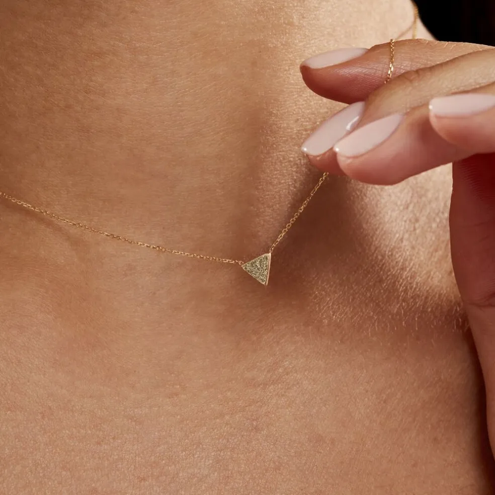 Collier Or Jaune 375/1000 Triangle Glitter Dore Maille Jaseron 40+2cm