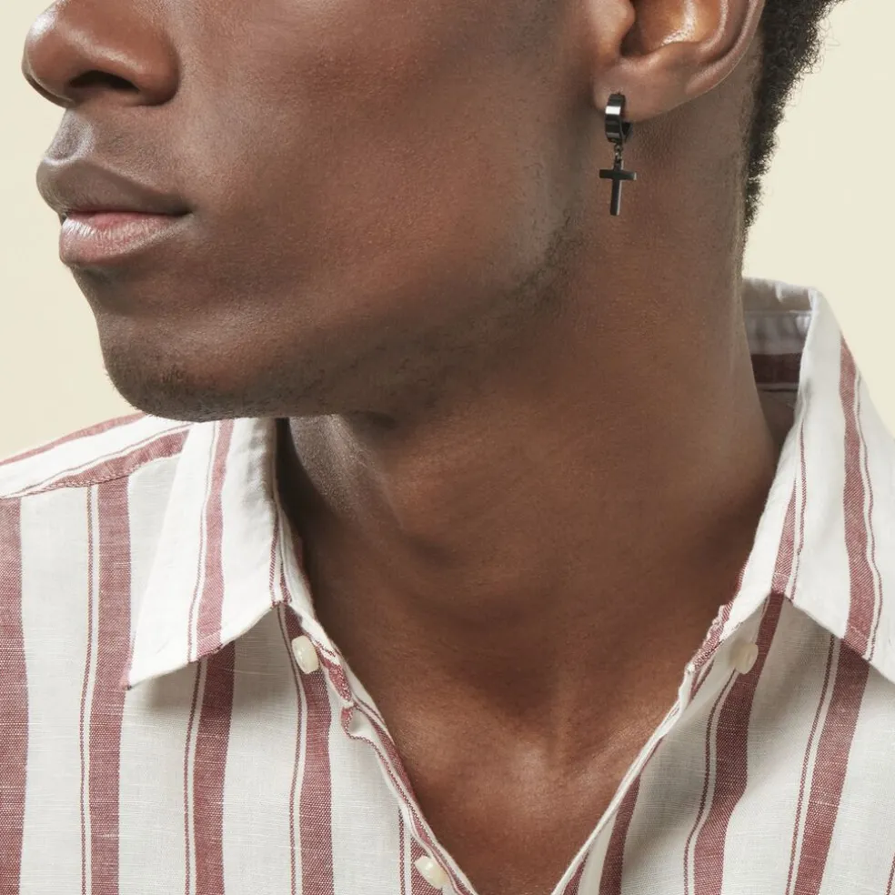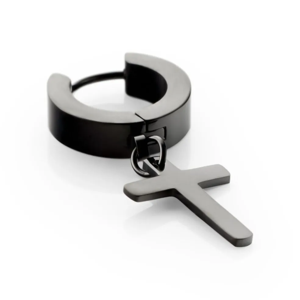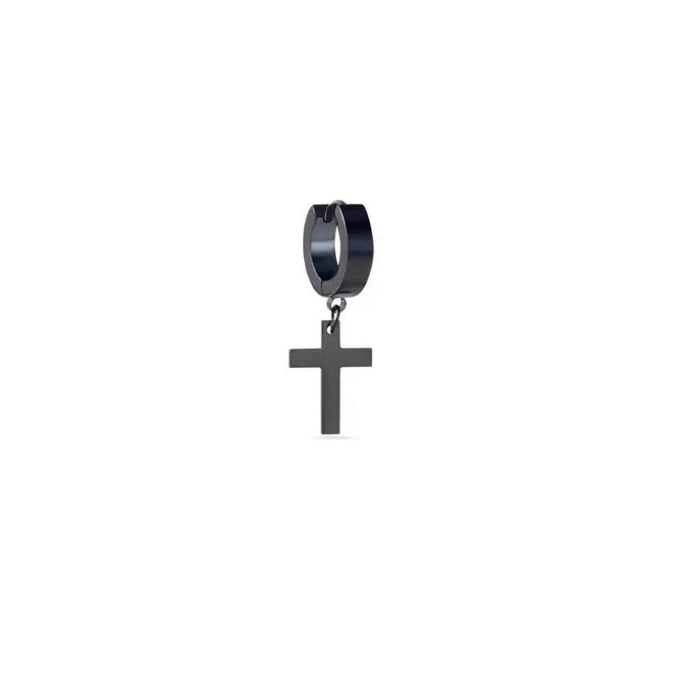 Créole Unitaire Acier Inoxydable Noir Pampille Croix 12mm