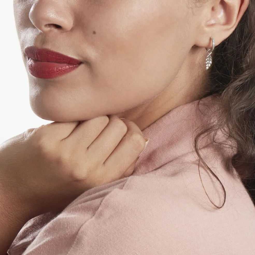 Creole Unitaire Argent Blanc 925/1000 Pampille Feuille Pavage Oxydes De Zirconium